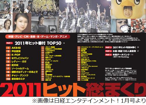 同誌はAKB48の2011年を「セールスやメディア露出の面では申し分のない活躍。さらに“姉妹”に“ライバル”まで自分たちで作る、増殖ぶりが際立った1年だった」と総括。1月に大阪のNMB48、11月に博多のHKT48が公演を開始したほか、フォーマットを海外輸出したインドネシアのJKT48、公式ライバルの乃木坂46の誕生と、「過去に例のないアイドルビジネスが本格的にスタートした年」と振り返っている。